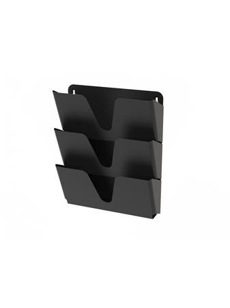 Prospektustartó, fém, fali, fekvő, A4, 3 rekesz, ALBA, fekete